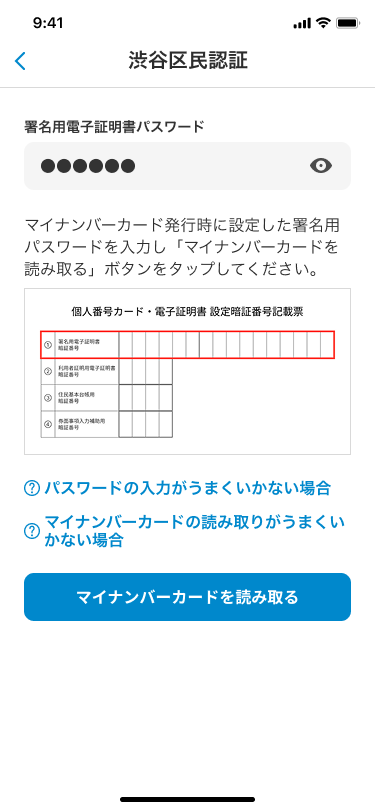 パスワードがわからない場合など渋谷区公的個人認証サービスページをご確認ください。