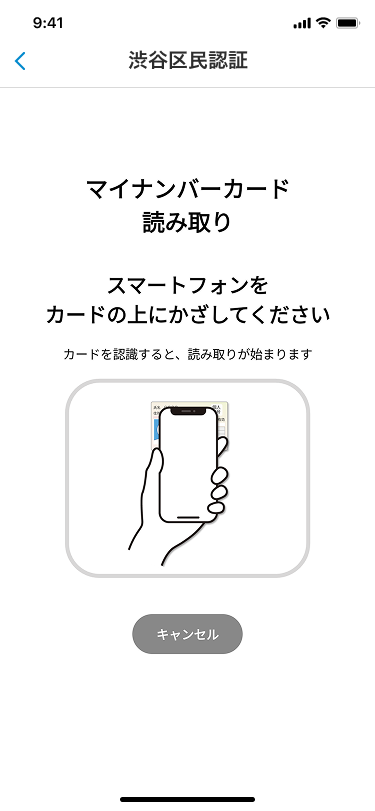 お手元にマイナンバーカードを準備して渋谷区民認証を開始をタップしてください。